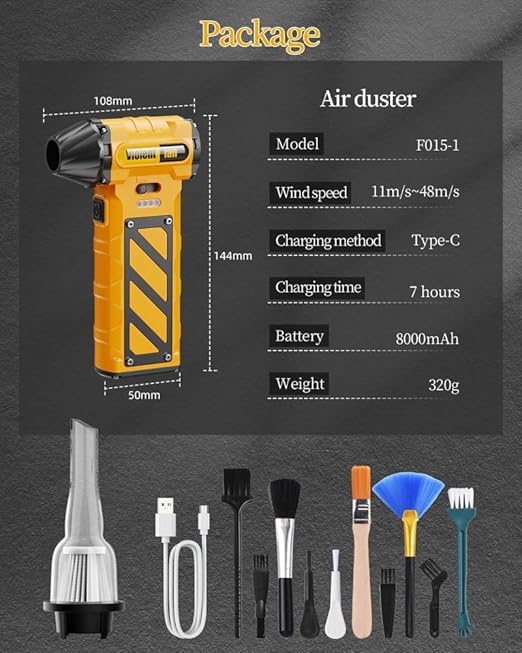 Equipped with dual functionality — air duster and vacuum mode — it offers complete versatility for cleaning keyboards, computer parts, car interiors, camping gear, and construction tools. The rechargeable design ensures cordless freedom, making it easy to carry and use anywhere.
