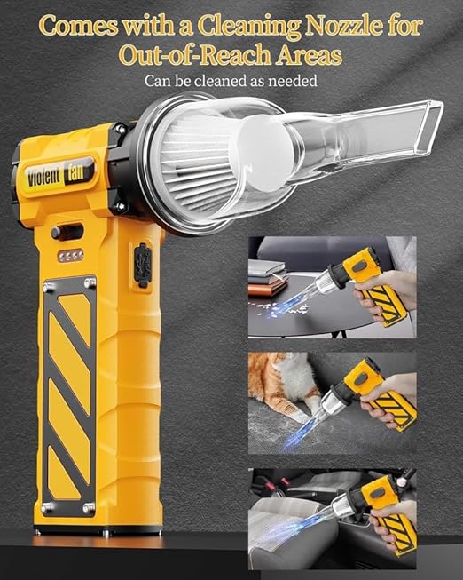 Built for durability and high performance, this mini handheld cleaner combines a lightweight body with powerful suction and blowing capabilities, making it an eco-friendly, reusable alternative to canned air.