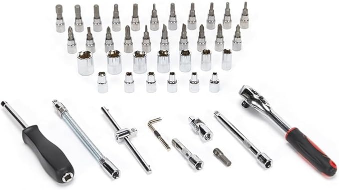 The Heavy Duty Hand Tool Storage Box is a comprehensive 46-piece auto car repair kit, designed to handle all your automotive repair and maintenance needs. This portable set includes a wide array of essential tools, including a ratchet socket wrench set, making it ideal for car repairs, household maintenance, and DIY projects. Each tool is made from high-quality materials to ensure durability and long-lasting performance, whether you're working in the garage or on the go.The sturdy and compact storage box ensures that all 46 tools are securely organized and easy to transport. The ergonomic ratchet handle allows for comfortable and efficient use, while the diverse selection of sockets and wrenches ensures you're prepared for any repair task. Whether you're a professional mechanic or a DIY enthusiast, this kit provides everything you need to tackle tough jobs with ease.Perfect for keeping in your car, home, or workshop, the 46-piece auto repair kit is a must-have for quick fixes and general maintenance.Bullet Points:46-Piece Tool Set: Includes a wide variety of tools, from sockets to wrenches, ideal for auto repairs and household tasks.Portable & Compact Storage Box: Ensures all tools are organized and easy to carry, perfect for on-the-go repairs.Durable Construction: High-quality materials designed for tough jobs, ensuring long-lasting performance.Ratchet Socket Wrench Set: Features an ergonomic ratchet handle for comfortable use and precise adjustments.Versatile Repair Kit: Suitable for car repairs, DIY projects, and general maintenance around the house or workshop.Keywords:Heavy duty tool storage box46-piece car repair kitRatchet socket wrench setPortable tool kitAuto repair tool setMechanic tool kitCar maintenance toolsDIY repair tool kitCompact tool storage boxAuto repair socket set